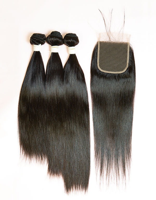 3 Virgin Remy Human Hair Bundles, 1 Natural Lace Closure or Lace Frontal, 1 Mesh Net Dome Wig Cap, Weaving Thread, 2 C-Style Weaving Needles, 2 Duckbill Clips, 10 T-Pins, Esha Lace Wig Bond